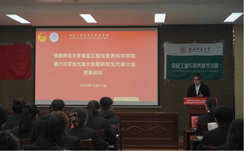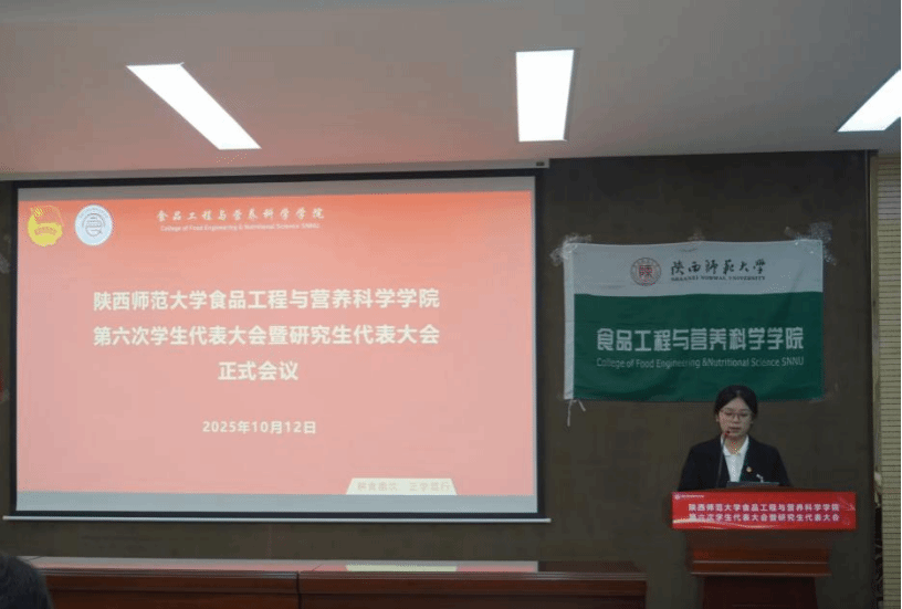 2025年10月12日上午,食品工程與營(yíng)養(yǎng)科學(xué)學(xué)院召開(kāi)第六次學(xué)生(研究生)代表大會(huì)。學(xué)院黨委副書(shū)記孫凡、團(tuán)委書(shū)記劉笑、學(xué)院輔導(dǎo)員王皓、劉頤嬌、李羽豐、全體學(xué)代會(huì)代表參加了會(huì)議。