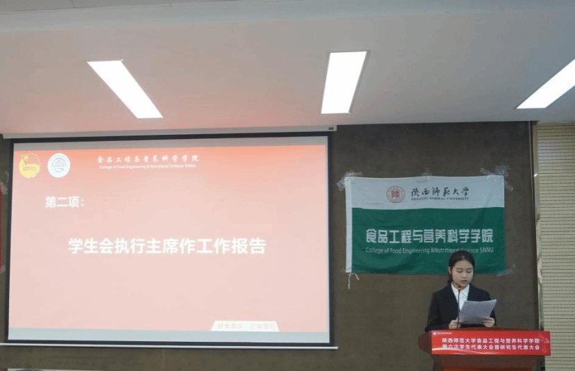 正式會(huì)議由郭澳春同學(xué)主持,會(huì)上,本科生張舒棋、研究生任心蕊分別代表學(xué)生會(huì)和研究生會(huì)作第五屆學(xué)生委員會(huì)(研究生委員會(huì))工作報(bào)告。報(bào)告圍繞思想引領(lǐng)、組織建設(shè)、校園文化、科技創(chuàng)新、社會(huì)實(shí)踐等方面對(duì)過(guò)去一年的學(xué)生工作進(jìn)行了全面總結(jié),對(duì)未來(lái)學(xué)生會(huì)、研究生會(huì)的工作進(jìn)行展望。大會(huì)通過(guò)了《關(guān)于通過(guò)食品工程與營(yíng)養(yǎng)科學(xué)學(xué)院第五屆學(xué)生會(huì)(研究生會(huì))工作報(bào)告》《關(guān)于通過(guò)食品工程與營(yíng)養(yǎng)科學(xué)學(xué)院第六次學(xué)生代表大會(huì)提案工作報(bào)告》《關(guān)于通過(guò)食品工程與營(yíng)養(yǎng)科學(xué)學(xué)院第六次學(xué)生代表大會(huì)代表資格審查報(bào)告》的決議。
